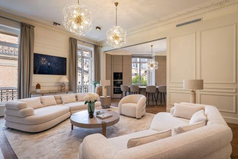 Ubicado en la Avenue Montaigne, una de las direcciones más prestigiosas de París, este apartamento de 235 m² con techos de 3,80 m de altura ofrece una experiencia de alojamiento incomparable en el corazón de la ciudad. Situado en el renombrado “Triángulo de Oro”, está rodeado de las casas de moda más exclusivas, boutiques de lujo, restaurantes con estrellas Michelin y lugares icónicos.